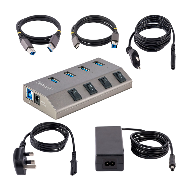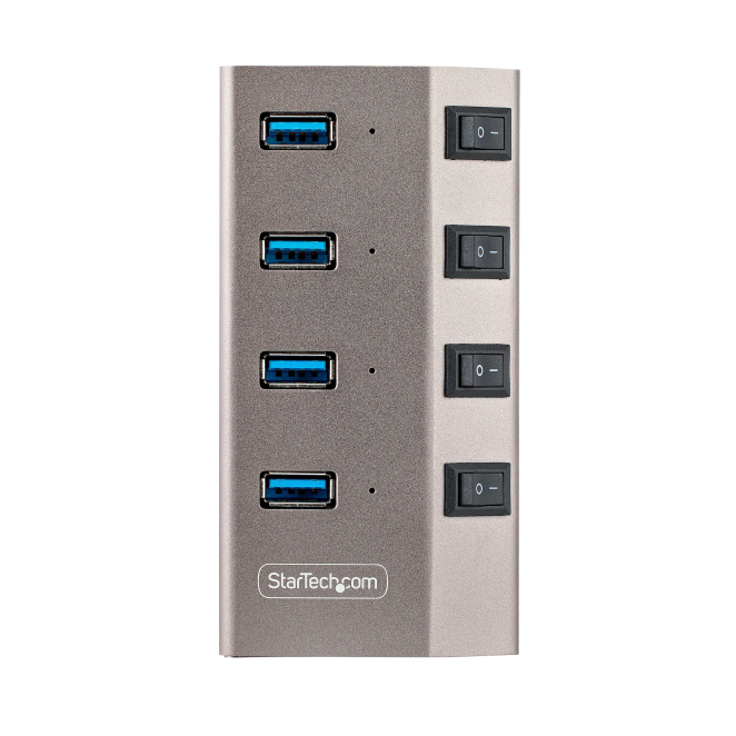 StarTech.com Hub USB-C autoalimentado de 4 puertos con interruptores individuales y fuente de alimentación. SKU: 5G4AIBS-USB-HUB-EU