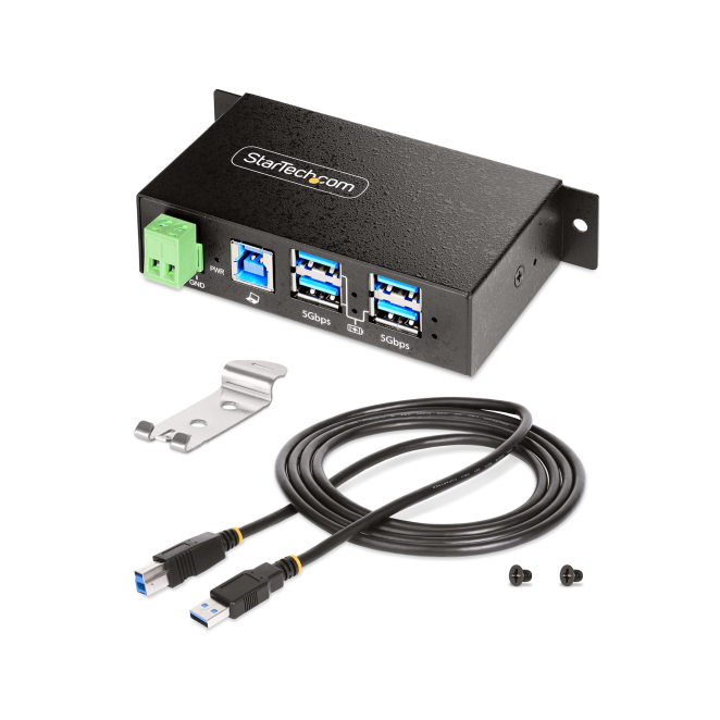 StarTech.com Hub USB Industrial de 4 Puertos Gestionado con caja de metal, protección ESD y sobrevoltaje, compatible con USB 3.2 Gen 1 de 5Gbps, SKU 5G4AINDRM-USB-A-HUB