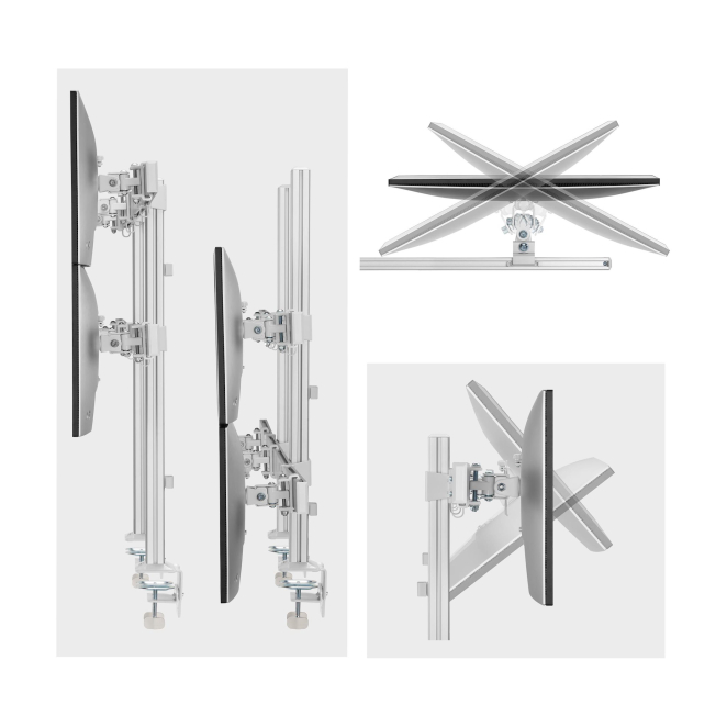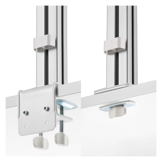 Montaje flexible: Opción de montaje con pinza o tornillo, adaptándose a diferentes tipos de escritorios y configuraciones.