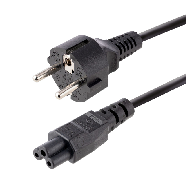 StarTech.com Cable de 3m de Alimentación de Repuesto para Ordenador Portátil, EU Schuko a C5, 2,5A 250V, 18AWG, para Cargador de Portátiles, Hoja de Trébol/Mickey Mouse