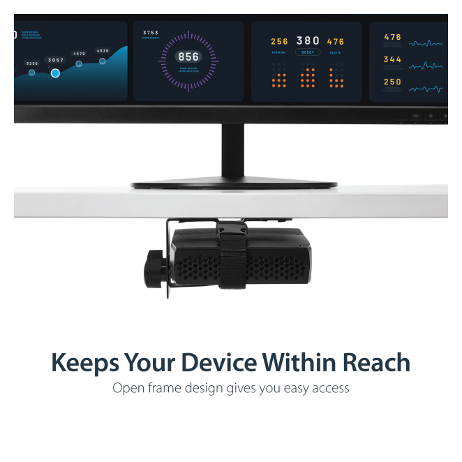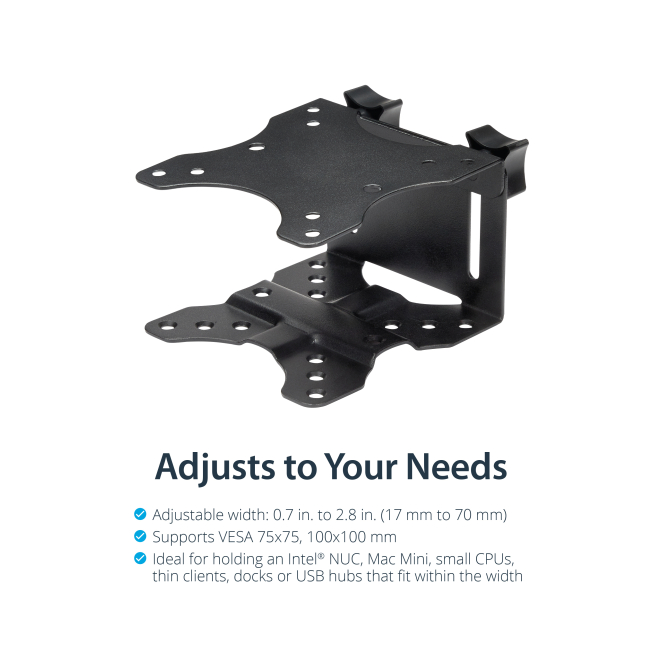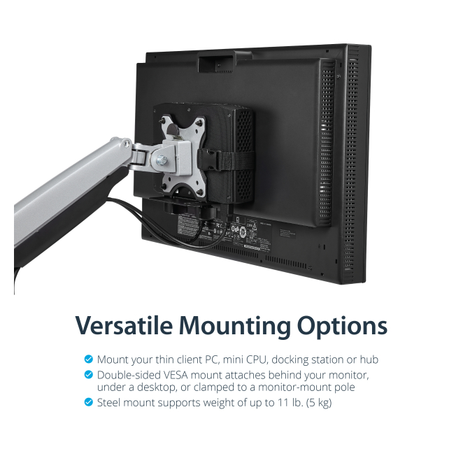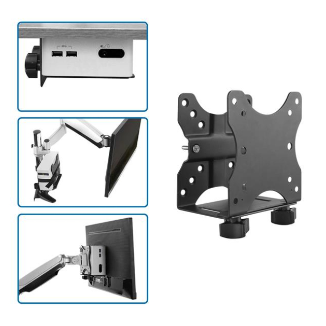 El soporte es ideal para clientes delgados, replicadores de puertos, routers, módems, extensores de vídeo y reproductores de medios para señalización digital.