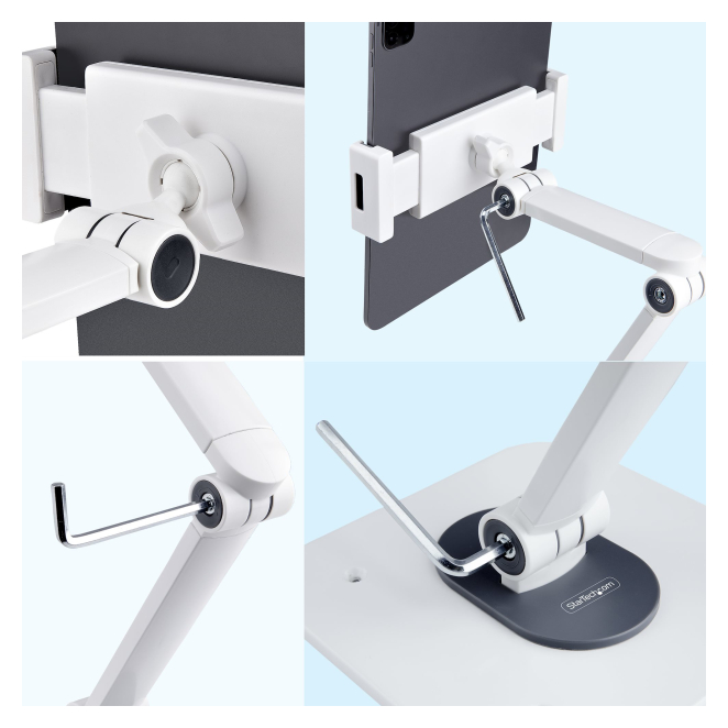 StarTech.com Soporte Ajustable de Sobremesa para Tablet – de Montaje en Pared – 1kg de Capacidad – Base Ergonómica Ajustable para Tablet – con Giro, Rotación e Inclinación