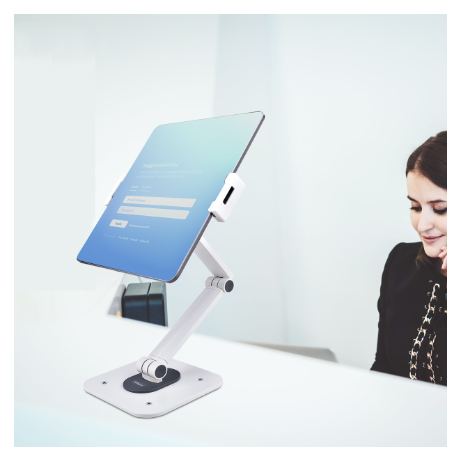 Soporte ajustable de sobremesa StarTech para tablet con capacidad de 1kg y montaje en pared. Incluye base ergonómica, giro, rotación e inclinación. SKU ADJ-TABLET-STAND-W Este producto se puede comprar bajo demanda. Financiado desde: 2,40 € /mes Solicita información en caso de necesitar envío urgente. Métodos de pago: StarTech.com Soporte Ajustable de Sobremesa para Tablet Incorpore sin problemas su tablet al espacio de trabajo con el StarTech.com Soporte Ajustable de Sobremesa para Tablet. Este soporte ergonómico cuenta con una construcción robusta de acero y aluminio y puede montarse tanto en un escritorio como en la pared. Capaz de soportar tablets de hasta 1 kg, ofrece una rotación de 360 grados, inclinación ajustable y un ángulo de giro de 52 grados. Ideal para tabletas de 4.7 a 12.9 pulgadas, el soporte proporciona un fácil ajuste de altura y una visualización cómoda y eficiente de su dispositivo.