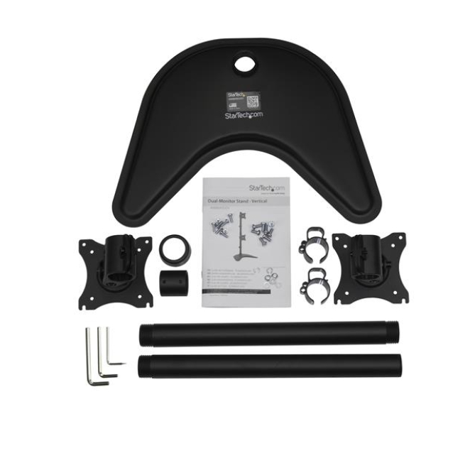 El StarTech.com soporte vertical de acero de servicio pesado para dos monitores soporta pantallas entre 13 y 27 pulgadas.