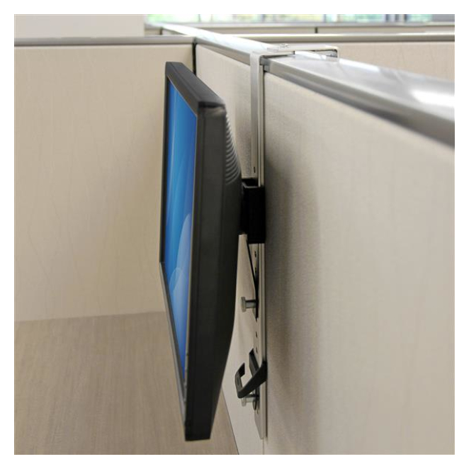 Colgar el monitor en el cubículo libera espacio valioso en el escritorio, permitiendo un área de trabajo más limpia y organizada.