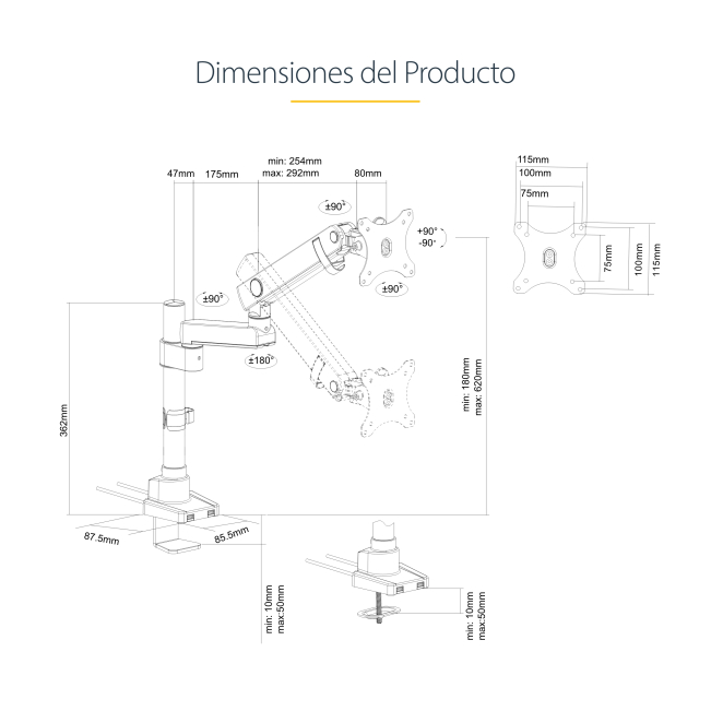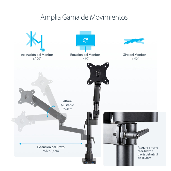 Es compatible con monitores de 17 a 34 pulgadas, haciendo de este brazo de monitor premium una opción versátil.