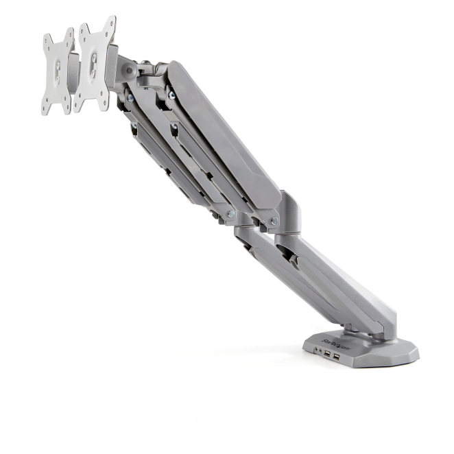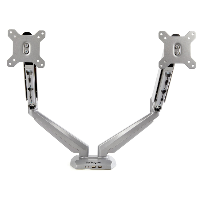 Brazo de soporte dual StarTech.com para 2 monitores VESA de 15 a 32 pulgadas con hub USB de 2 puertos. SKU: ARMSLIMDUOS