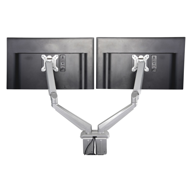 El Brazo de Soporte para 2 Monitores StarTech.com es compatible con monitores que tengan monturas VESA 75×75 mm y 100×100 mm y que pesen hasta 16 kg cada uno.