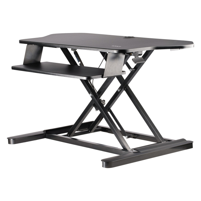 Convertidor de escritorio de pie y sentado de esquina StarTech.com con superficie de 89cm x 53cm, bandeja para teclado y altura ajustable, SKU ARMSTSCORNR.