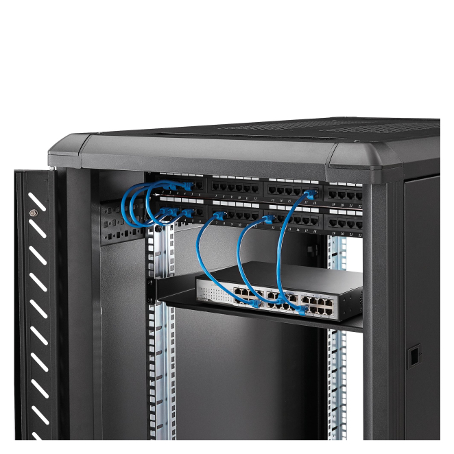 Incluye todos los tornillos necesarios, lo que la hace muy sencilla de instalar en cualquier rack compatible con EIA-310.