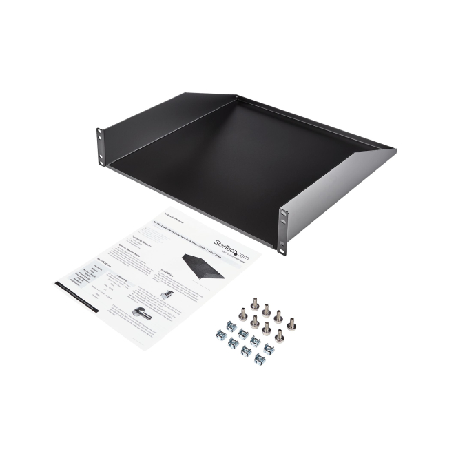 StarTech.com estante bandeja cantilever 2U para armario rack de servidores de 19 pulgadas, 18 pulgadas de profundidad, 56kg de carga, acero de servicio pesado, negro. SKU CABSHELFHD