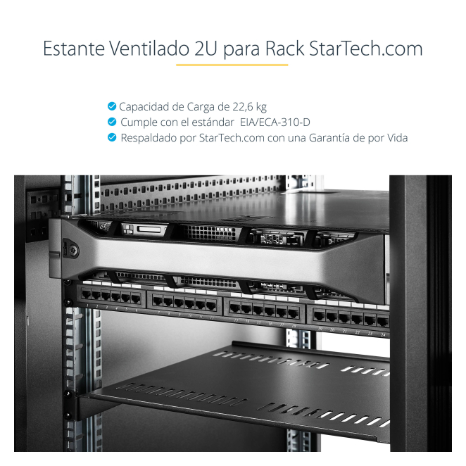 Sí, el estante ventilado StarTech.com es compatible con cualquier rack o gabinete de servidores estándar de 19 pulgadas.