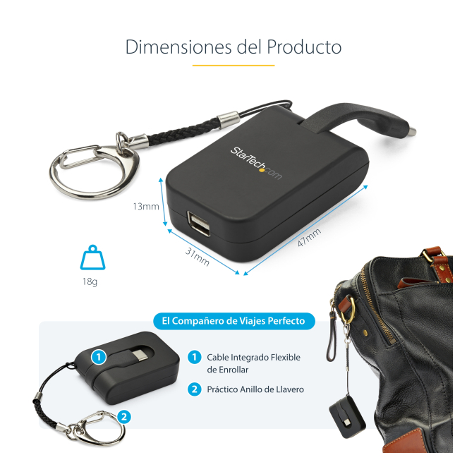 - Portabilidad: Su diseño compacto y el llavero desmontable facilitan su transporte, ideal para profesionales en movimiento.