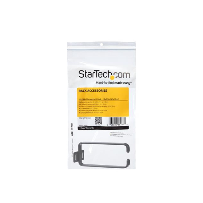 StarTech.com Anilla Pasacables Vertical 1U para Gestión de Cableado en Armarios Racks, dimensiones 4,5x10cm, SKU CMHOOK1UN