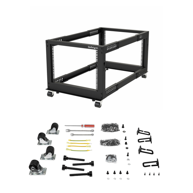 StarTech.com Rack 12U Móvil de Marco Abierto de 4 Columnas para Servidores – Rack de Cuatro Columnas de 19 Pulgadas para Equipo de Red e Informático – Ruedas o Patas Niveladoras