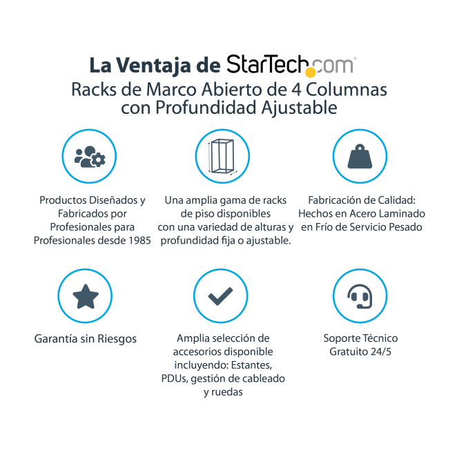Presentamos una breve sección de preguntas frecuentes para resolver cualquier duda sobre el StarTech.com Rack 12U Móvil de Marco Abierto de 4 Columnas para Servidores: