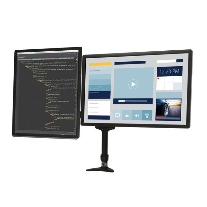 - Ergonomía mejorada: Ajusta la altura, inclinación, y ángulo de rotación de tus monitores para una postura más saludable y menos fatiga visual.