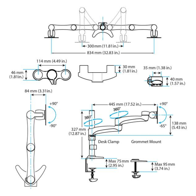 - Fácil ajuste: Con opciones de inclinación de -90 a 90 grados y rotación de 360 grados, puedes personalizar completamente tu vista de trabajo.
