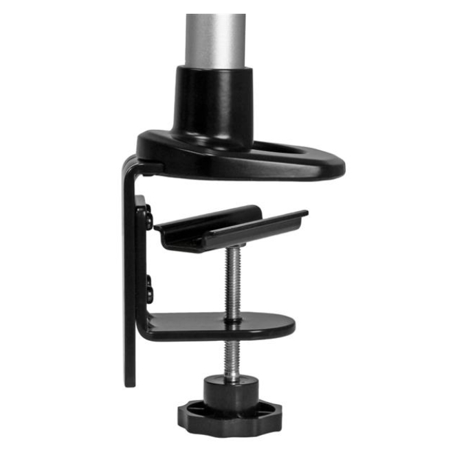 El soporte es adaptable a escritorios con un espesor mínimo de 10 mm y máximo de 75 mm.