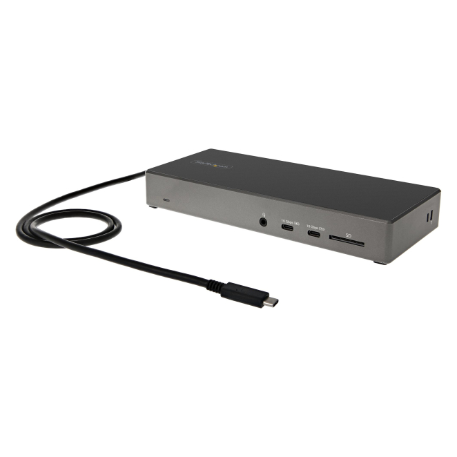 La estación de acoplamiento StarTech.com Dock USB-C es una de las más completas y potentes del mercado. Aquí enumeramos algunas razones para adquirir este producto: Con soporte para múltiples monitores, varios puertos USB y conectividad Ethernet, atiende todas sus necesidades de conectividad en un solo dispositivo. Entrega de alimentación de 100W asegura que sus dispositivos se mantengan cargados, incluso durante un uso intensivo. Funciona perfectamente con portátiles Windows y Chrome, garantizando una integración seamless con su ecosistema de trabajo. Instalación rápida y sencilla gracias a su diseño intuitivo y guía de configuración rápida incluida. Construcción robusta y materiales de alta calidad, proporcionan larga vida útil al producto.