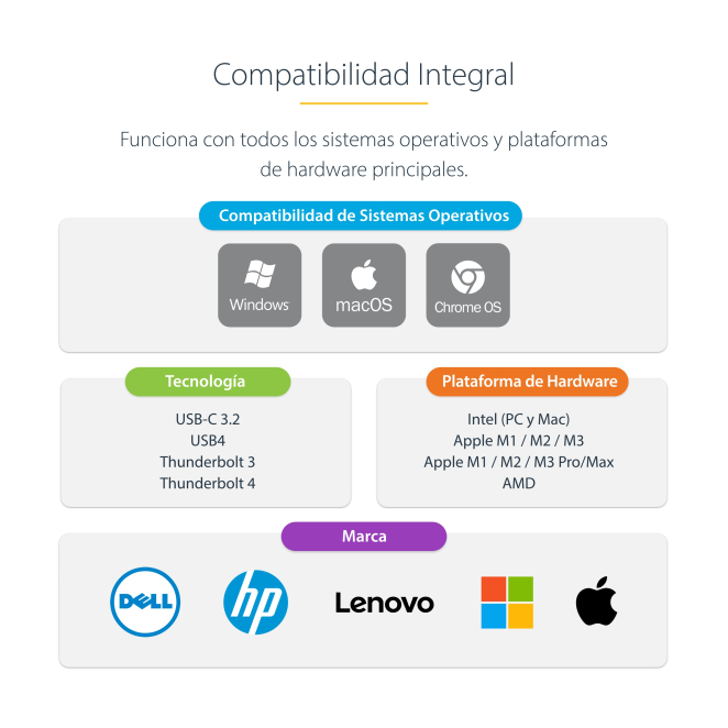 Invertir en la StarTech.com Mini Docking Station USB-C es una decisión inteligente por varias razones: Conexión Múltiple: Soporta hasta cuatro monitores 4K, ideal para multitarea. Potencia y Carga: Entrega de energía de 100W garantiza que todos tus dispositivos se mantengan cargados. Alta Velocidad: Puertos USB 3.2 Gen 2 y Ethernet aseguran transferencias rápidas de datos. Diseño Compacto: Perfecto para espacios de trabajo reducidos sin sacrificar la funcionalidad. Versatilidad: Compatible con múltiples sistemas operativos, incluyendo Windows, macOS y Chromebook.