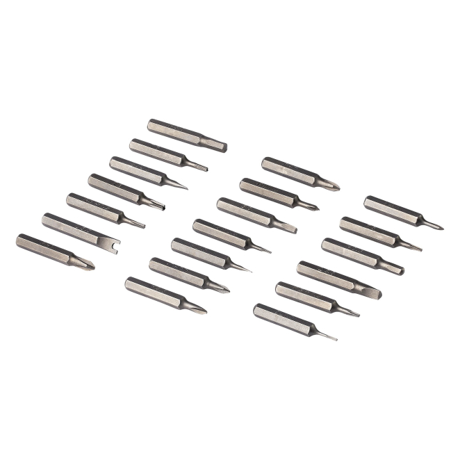 Incluye 20 puntas de precisión compatible con las principales marcas de dispositivos electrónicos.