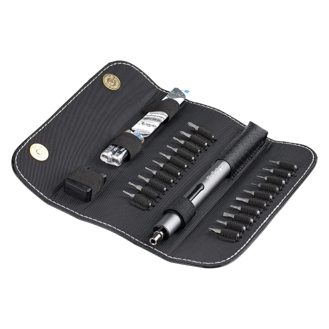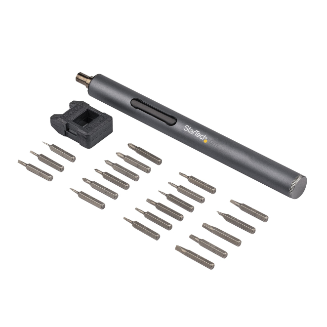StarTech.com Destornillador Eléctrico con Juego de 20 Puntas de Precisión – Mini Destornillador Portátil a Pilas para Reparación de Ordenadores, Tablets y Móviles – Inalámbrico