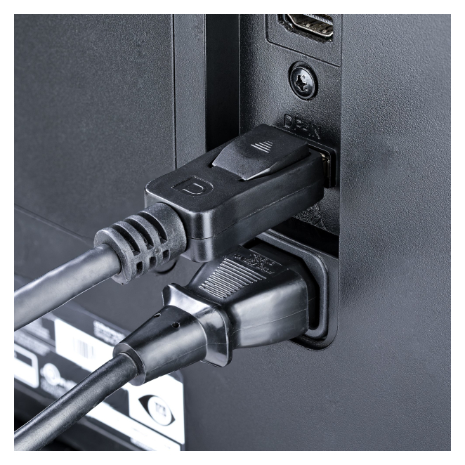 Los conectores DP con pestillo aseguran que el cable permanezca firmemente en su lugar.