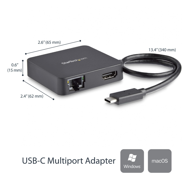 StarTech.com Adaptador Multipuertos USB C – Mini Dock Portátil USB-C 4K HDMI – Gigabit Ethernet – Hub USB 3.0 (1x USB-A 1x USB-C) – Adaptador Multi USB TipoC – Compatible con Thunderbolt 3