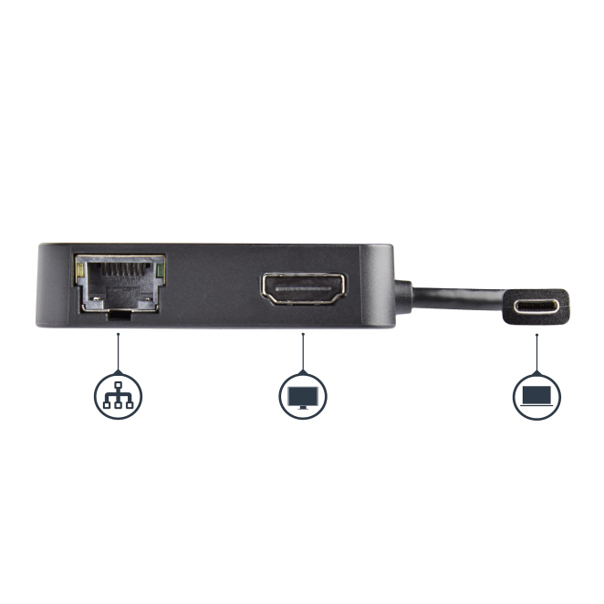Adaptador multipuertos USB-C StarTech.com con 4K HDMI, Gigabit Ethernet y puerto USB 3.0, SKU DKT30CHD, compatible con Thunderbolt 3