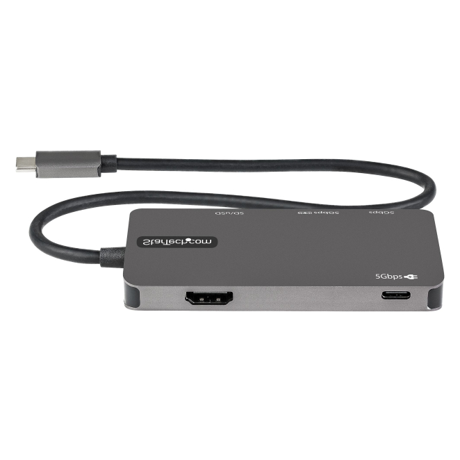 StarTech.com Adaptador Multipuertos USB C – USB C a HDMI de 4K – 100W de Entrega de Alimentación PD – SD – MicroSD – Hub Ladrón USB 3.0 de 3 Puertos – Dock USB Tipo C – con Cable Incorporado de 30cm