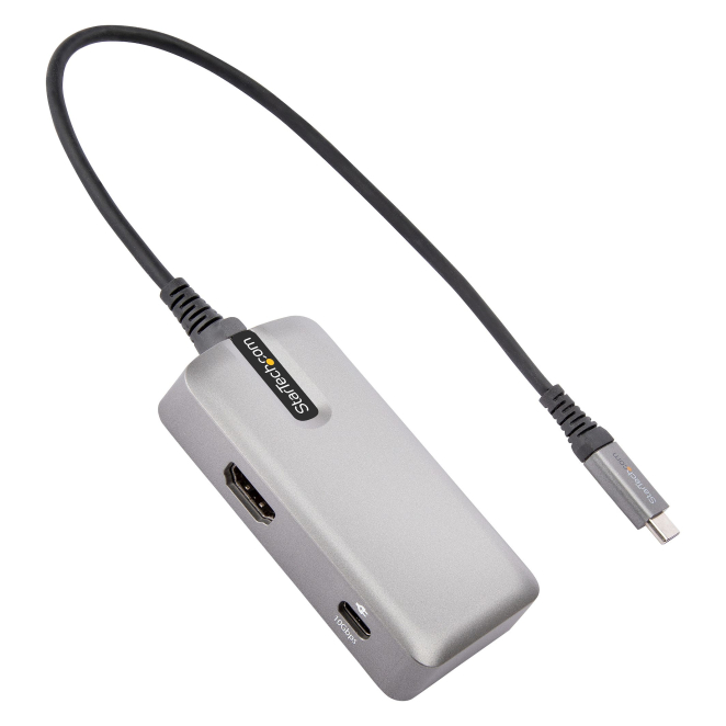 Adaptador multipuertos USB-C a HDMI 2.0 de StarTech con soporte 4K a 60Hz y Power Delivery de 100W, modelo DKT31CHPD3 Este producto se puede comprar bajo demanda. Financiado desde: 2,65 € /mes Solicita información en caso de necesitar envío urgente. Métodos de pago: StarTech.com Adaptador Multipuertos USB C – USB-C a HDMI 2.0 4K 60Hz, PD con Paso de 100W – Hub USB de 3 Puertos de 10Gbps – Mini Docking Station USB Tipo C Portátil – Cable de 25cm El StarTech.com Adaptador Multipuertos USB C es la solución perfecta para transformar tu portátil o tableta USB-C en una estación de trabajo completamente equipada. Este adaptador multipuertos incluye un puerto HDMI 2.0 soportando 4K a 60Hz, un puerto USB-A de 10Gbps y dos puertos USB-C, uno de los cuales ofrece Power Delivery (PD) de hasta 100W. Con su diseño compacto y un cable de 25cm, es ideal para quienes necesitan conectividad avanzada en movimiento. Optimiza tu flujo de trabajo con el adaptador USB-C de StarTech.com, garantizando rapidez y versatilidad a través de conexiones alámbricas de alta velocidad.