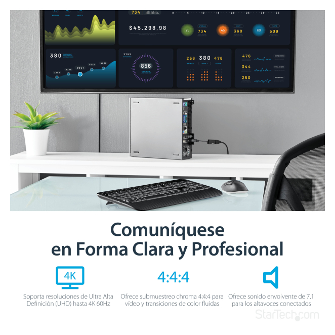 Existen varias razones para optar por el StarTech.com adaptador conversor DisplayPort a HDMI – 4K 60Hz: