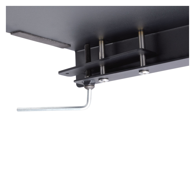 Esta bandeja es adecuada para escritorios en forma de L o de esquina de 12,7 a 38,1 mm de grosor. Se puede fijar tanto a escritorios de madera como de otros materiales.