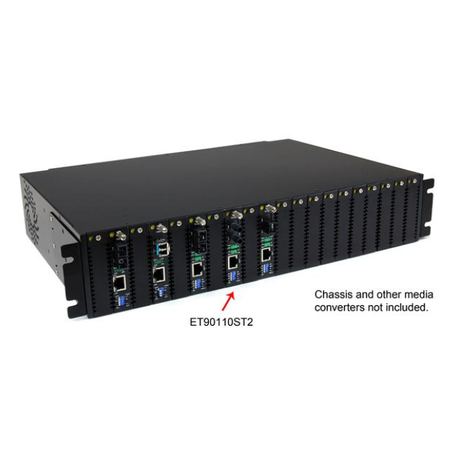 Conversor de Medios Ethernet 10/100 Mbps a Fibra Multi Modo Conector ST de StarTech.com, compatible hasta 2km. SKU: ET90110ST2