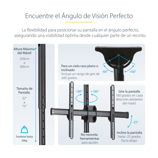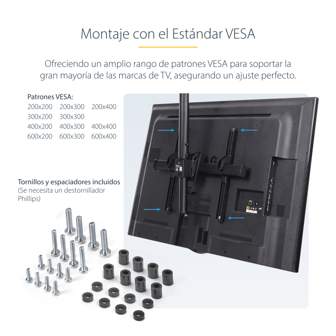 Existen múltiples razones por las que el StarTech.com Soporte de Techo para TV es la elección ideal: