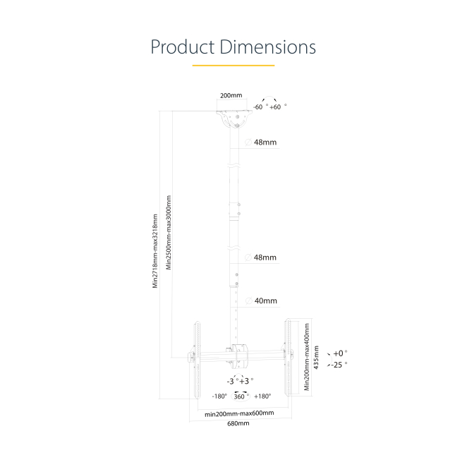StarTech.com Soporte de Techo para TV - Ajuste de altura