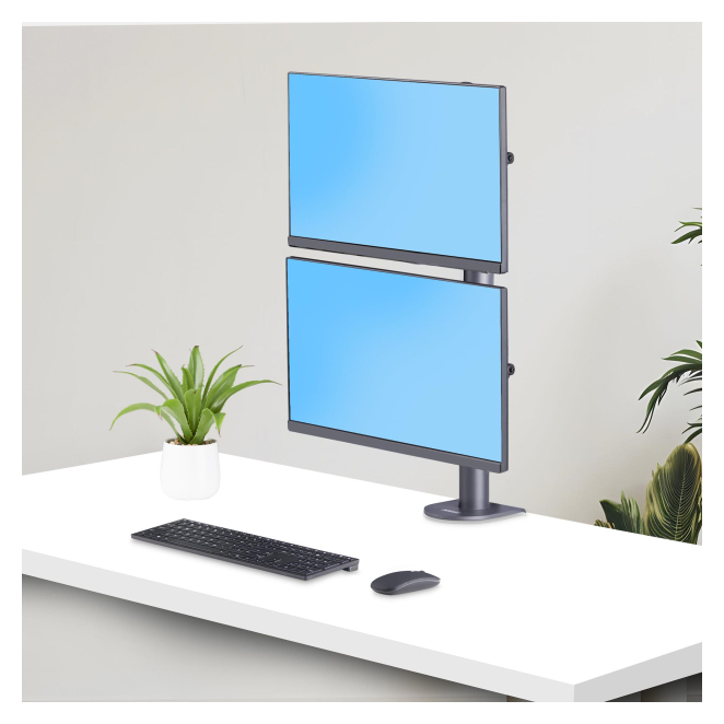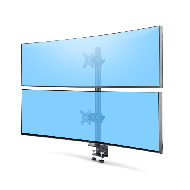 StarTech.com soporte de sobremesa para dos monitores apilados verticalmente de 49 pulgadas, capacidad de carga de 32kg, de mordaza en C, SKU H2MPV-MONITOR-MOUNT