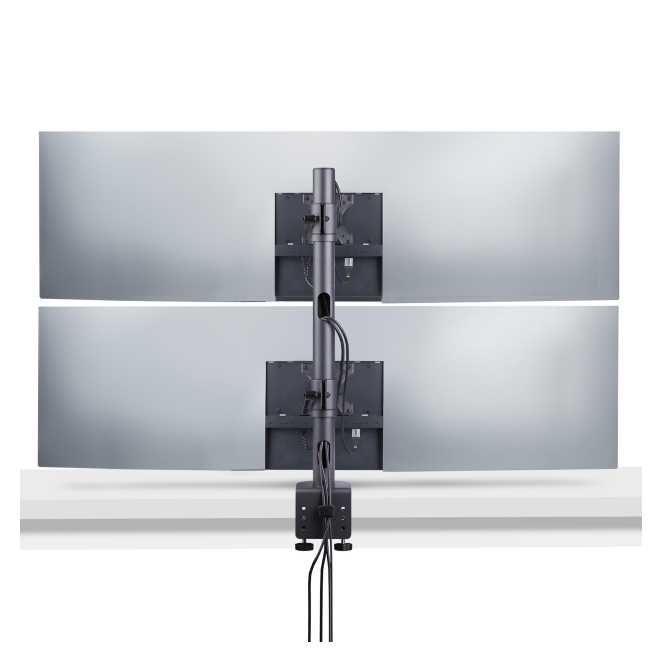 StarTech.com Soporte de Sobremesa para Dos Monitores Apilados Verticalmente de 49″ 16:9 o 32:9 – Capacidad de Carga de 32kg – de Mordaza en C – Soporte VESA para 2 Monitores – TAA
