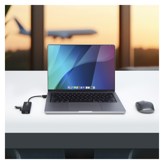 - Expansión de USB-A: Añade cuatro puertos USB 3.0 mediante una única conexión USB Tipo-C.