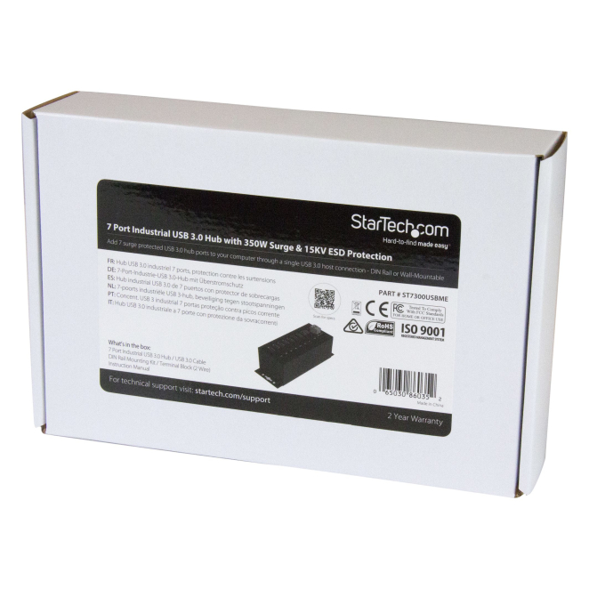 StarTech.com Hub Concentrador Ladrón USB de 7 Puertos con Adaptador de Corriente, Protección ESD, SKU HB30A7AME, USB 3.2 Gen 1, 5Gbps, Industrial, de Pared, Carril DIN o Mesa