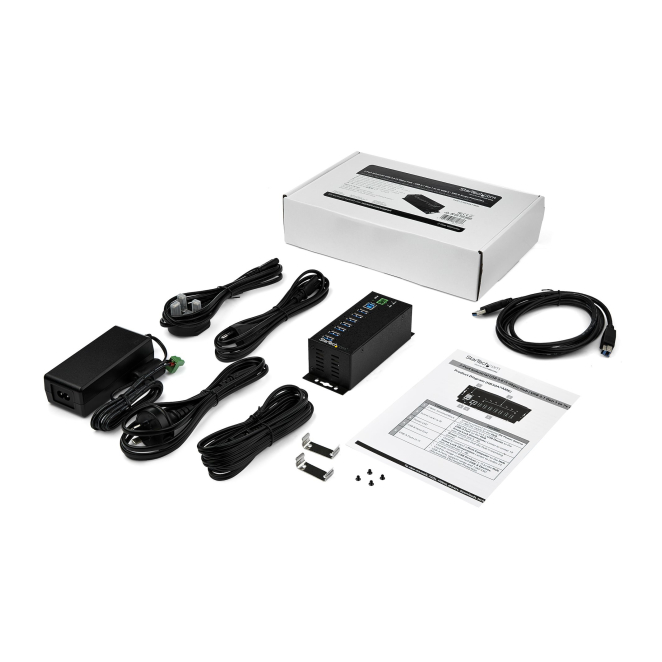 StarTech.com Hub Concentrador Ladrón USB de 7 Puertos con Adaptador de Corriente – con Protección ESD 350W – Hub Industrial USB 3.0 – de Pared Carril DIN o Mesa – Hub USB 3.2 Gen 1 de 5Gbps