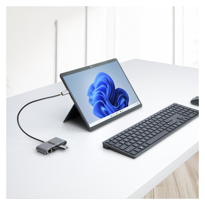 Conectividad Mejorada: Con tres puertos USB-A y un puerto Ethernet Gigabit, este hub ofrece múltiples opciones de conectividad.
