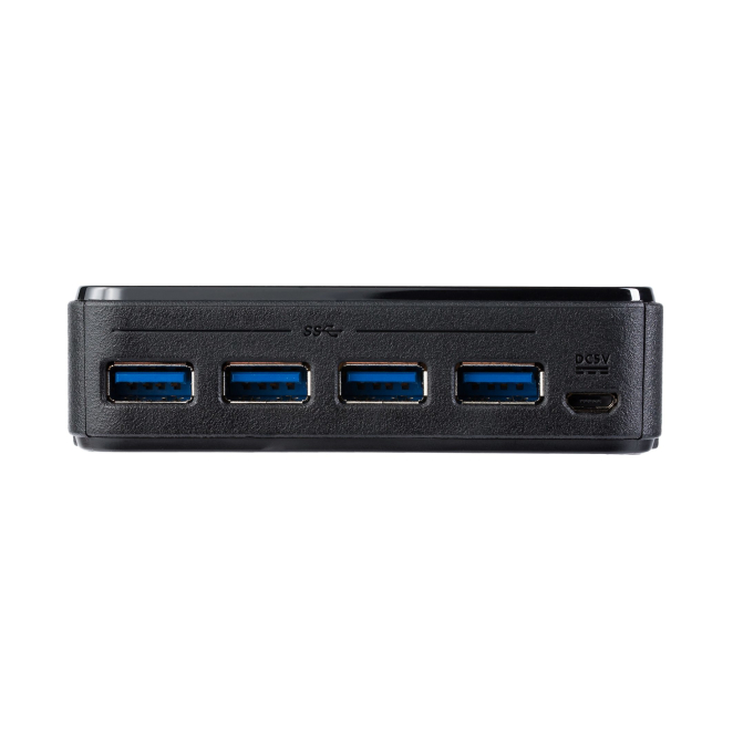 Aquí presentamos algunas preguntas frecuentes sobre el StarTech.com Switch Conmutador USB 3.0 (5Gbps) 4×4 para compartir dispositivos periféricos. Sí, el StarTech.com Switch Conmutador USB 3.0 (5Gbps) 4×4 es retrocompatible con dispositivos USB 2.0 y USB 1.1, por lo que funcionará perfectamente con periféricos de generaciones anteriores. No, este switch USB es plug-and-play y no requiere la instalación de ningún software o controlador adicional. No, está diseñado para compartir hasta cuatro dispositivos USB entre cuatro ordenadores. No obstante, puede conectar un hub para aumentar la cantidad de dispositivos compartidos. No es estrictamente necesario; puede cambiar entre dispositivos mediante el botón en el switch, pero el control remoto proporciona mayor comodidad. El switch tiene indicadores LED que muestran qué ordenador está actualmente activo, permitiéndole saber fácilmente cuál está utilizando los periféricos compartidos. Color del producto Negro Indicadores LED Si Certificación CE, FCC, REACH Intervalo de temperatura operativa 0-40 °C Intervalo de temperatura de almacenaje -20-60 °C Intervalo de humedad relativa para funcionamiento 0-80 % Ancho 94 mm Profundidad 94 mm Altura 26 mm Peso 124 g Ancho del paquete 160 mm Profundidad del paquete 239 mm Altura del paquete 59 mm Peso del paquete 570 g Certificados de conformidad RoHS Guía de configuración rápida Sí
