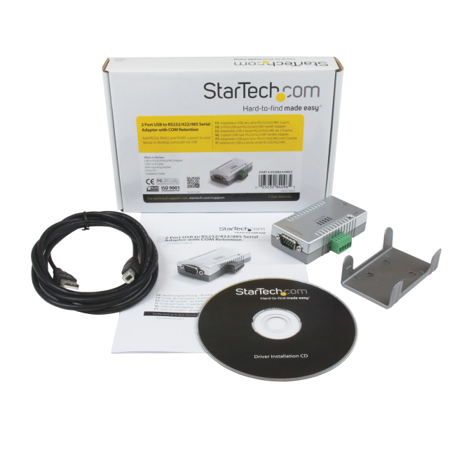 Existen múltiples razones por las cuales el StarTech.com Adaptador Concentrador Hub 2 Puertos Serie Serial RS232 DB9 a USB con Retención Puerto COM es una excelente inversión: Soporta diferentes protocolos de comunicación serie, asegurando que puedas conectar una amplia variedad de dispositivos. Configuración rápida y fácil con controles de interruptores DIP y soporte de montaje en pared. Mantiene la configuración del puerto COM para asegurar un rendimiento estable y sin problemas. Aquí tienes algunas preguntas frecuentes sobre el StarTech.com Adaptador Concentrador Hub 2 Puertos Serie Serial RS232 DB9 a USB con Retención Puerto COM, que podrían ayudarte a resolver algunas dudas comunes. El StarTech.com Adaptador Concentrador Hub 2 Puertos Serie Serial RS232 DB9 a USB con Retención Puerto COM es compatible con la mayoría de los sistemas operativos, incluyendo Windows y Linux. No, el adaptador se configura fácilmente mediante interruptores DIP, facilitando su instalación sin necesidad de software adicional. Puedes conectar cualquier dispositivo que utilice los protocolos RS232, RS422 o RS485, como impresoras, escáneres y equipos de comunicación. No, el adaptador se alimenta directamente a través del puerto USB del host, eliminando la necesidad de una fuente de alimentación externa. No, el adaptador viene únicamente con los conectores necesarios; los cables de conexión deben adquirirse por separado. Interfaz de host USB Tipo B Color del producto Gris Interno No Indicadores LED Poder Sistema operativo Windows soportado Windows 10, Windows 10 Education, Windows 10 Education x64, Windows 10 Enterprise, Windows 10 Enterprise x64, Windows 10 Home, Windows 10 Home x64, Windows 10 IOT Core, Windows 10 IoT Enterprise, Windows 10 Pro, Windows 10 Pro x64, Windows 10 x64, Windows 11, Windows 11 x64, Windows 2000, Windows 7, Windows 7 Enterprise, Windows 7 Enterprise x64, Windows 7 Home Basic, Windows 7 Home Basic x64, Windows 7 Home Premium, Windows 7 Home Premium x64, Windows 7 Professional, Windows 7 Professional x64, Windows 7 Starter, Windows 7 Starter x64, Windows 7 Ultimate, Windows 7 Ultimate x64, Windows 7 x64, Windows 8, Windows 8 Enterprise, Windows 8 Enterprise x64, Windows 8 Pro, Windows 8 Pro x64, Windows 8 x64, Windows 8.1, Windows 8.1 Enterprise, Windows 8.1 Enterprise x64, Windows 8.1 Pro, Windows 8.1 Pro x64, Windows 8.1 x64, Windows 98SE, Windows CE, Windows Vista, Windows Vista Business, Windows Vista Business x64, Windows Vista Enterprise, Windows Vista Enterprise x64, Windows Vista Home Basic, Windows Vista Home Basic x64, Windows Vista Home Premium, Windows Vista Home Premium x64, Windows Vista Ultimate, Windows Vista Ultimate x64, Windows Vista x64, Windows XP, Windows XP Home, Windows XP Home x64, Windows XP Professional, Windows XP Professional x64 Sistema operativo MAC soportado Mac OS X 10.10 Yosemite, Mac OS X 10.11 El Capitan, Mac OS X 10.12 Sierra, Mac OS X 10.13 High Sierra, Mac OS X 10.14 Mojave, Mac OS X 10.15 Catalina, Mac OS X 10.15.3 Catalina, Mac OS X 10.6 Snow Leopard, Mac OS X 10.7 Lion, Mac OS X 10.8 Mountain Lion, Mac OS X 10.9 Mavericks, Mac OS X 11.0 Big Sur, Mac OS X 12.0 Monterey, Mac OS X 13.0 Ventura Intervalo de temperatura operativa 0-55 °C Intervalo de temperatura de almacenaje -25-85 °C Intervalo de humedad relativa para funcionamiento 5-95 % Ancho 44.2 mm Profundidad 82.3 mm Altura 23 mm Peso 300 g Ancho del paquete 144 mm Profundidad del paquete 208 mm Altura del paquete 40 mm Peso del paquete 310 g Certificados de conformidad CE, RoHS Cantidad por paquete 1 pieza(s)