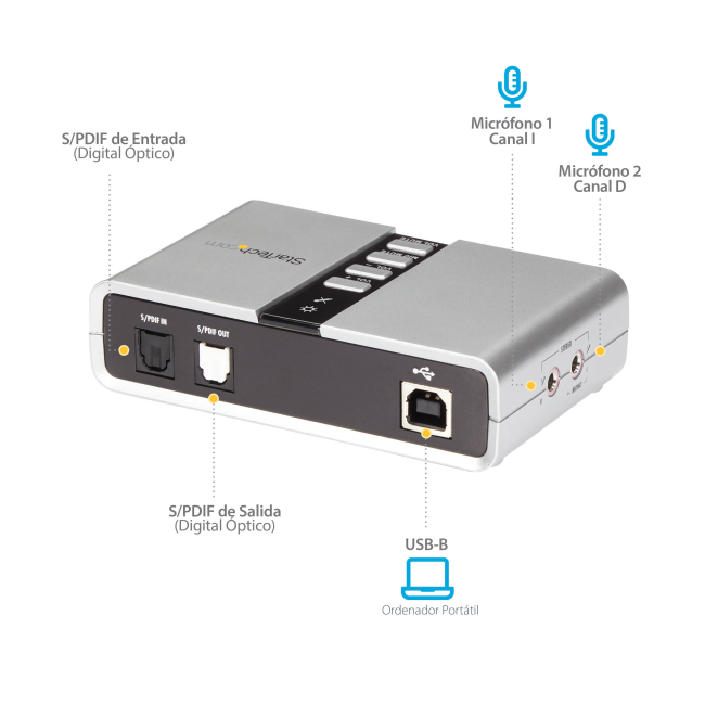 StarTech.com Tarjeta de Sonido 7,1 USB Externa vista de frente
