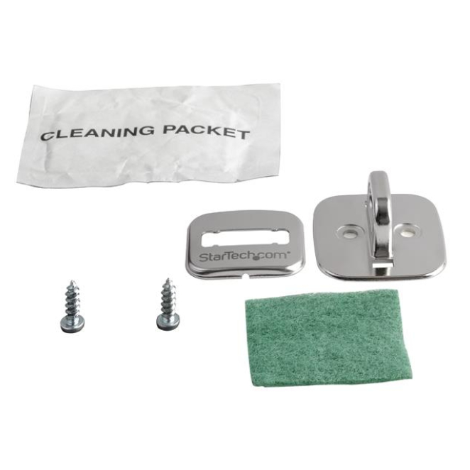 La StarTech.com ancla para cable con candado ofrece numerosas ventajas para quienes buscan proteger sus dispositivos. Gracias a su fabricación en aleación de zinc, este ancla para cable de seguridad es altamente resistente a manipulaciones y cortes. Con su instalación sencilla mediante tornillos y parche adhesivo, podrás colocarlo prácticamente en cualquier superficie maciza, como escritorios, mostradores, armarios, paredes, entre otros. El diseño compacto de este punto de anclaje StarTech asegura que no ocupe mucho espacio mientras que su construcción robusta te proporciona una protección superior.
