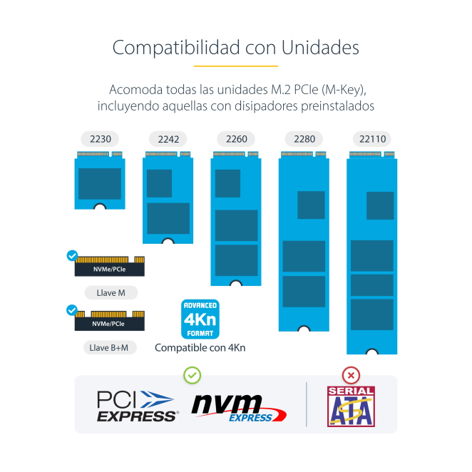 Este dock es compatible con unidades SSD NVMe M.2 y admite todas las unidades PCIe M.2 (M-Key).
