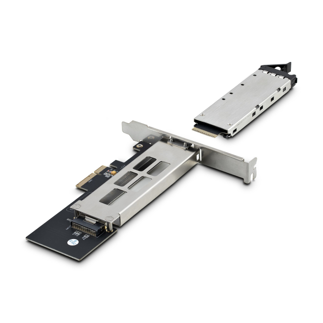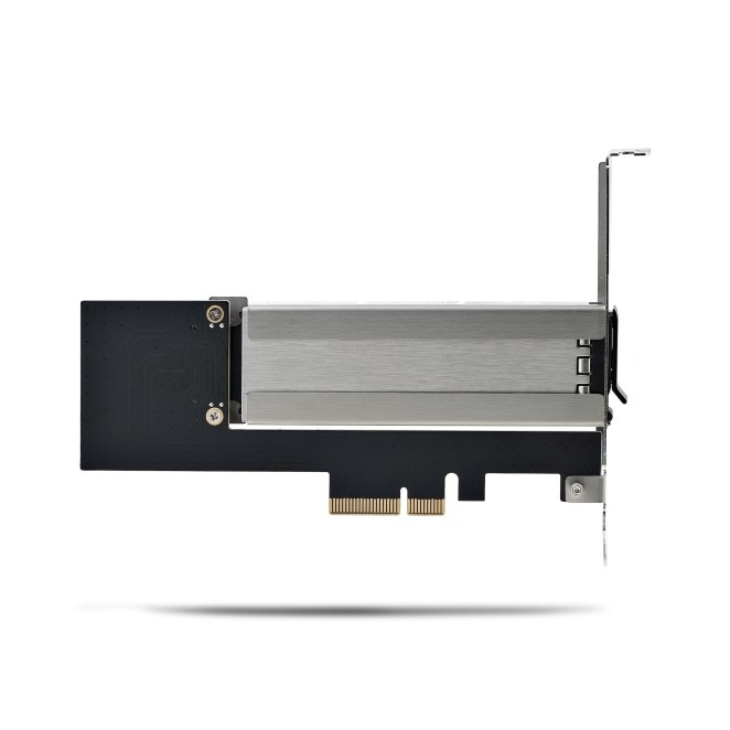 La instalación es muy sencilla y no requiere herramientas. Solo necesita insertar la bandeja con la unidad SSD en la tarjeta instalada en la ranura PCIe.