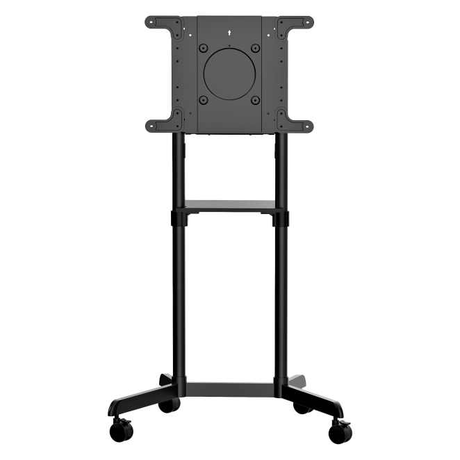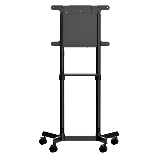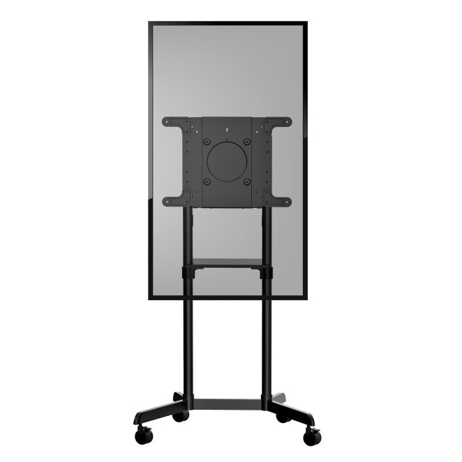 Su base robusta y ruedas bloqueables aseguran que tu pantalla esté siempre segura.